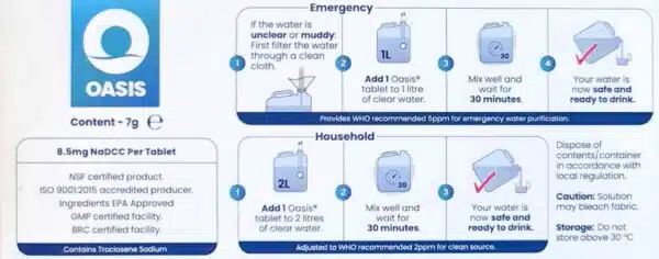 Gebruik onze waterzuiveringstabletten om verdacht drinkwater geheel te zuiveren en de houdbaarheid van normaal drinkwater te verlengen. Deze waterzuiveringstabletten van Oasis mogen niet ontbreken in je rugzak tijdens een wandeling of vakantie. Ook is het verstandig in de keukenla een pakje op voorraad te hebben.